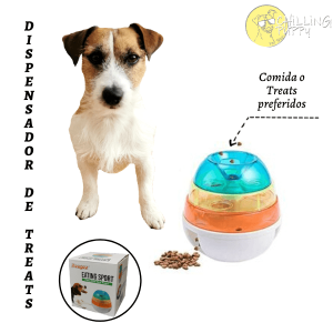 Se trata de un Juguete mordedor en forma de pesa, que deja suficiente espacio para los treats o croquetas preferidas.