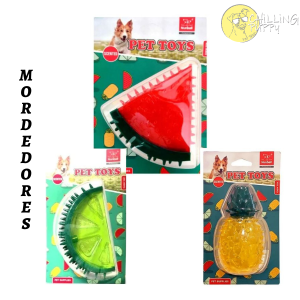 Los Mordedores con forma y aroma de frutas para mascotas se trata de un Juguete mordedor en forma de frutas que traen aroma a la misma para así atraer la atención del can, que le aportará múltiples beneficios como:
